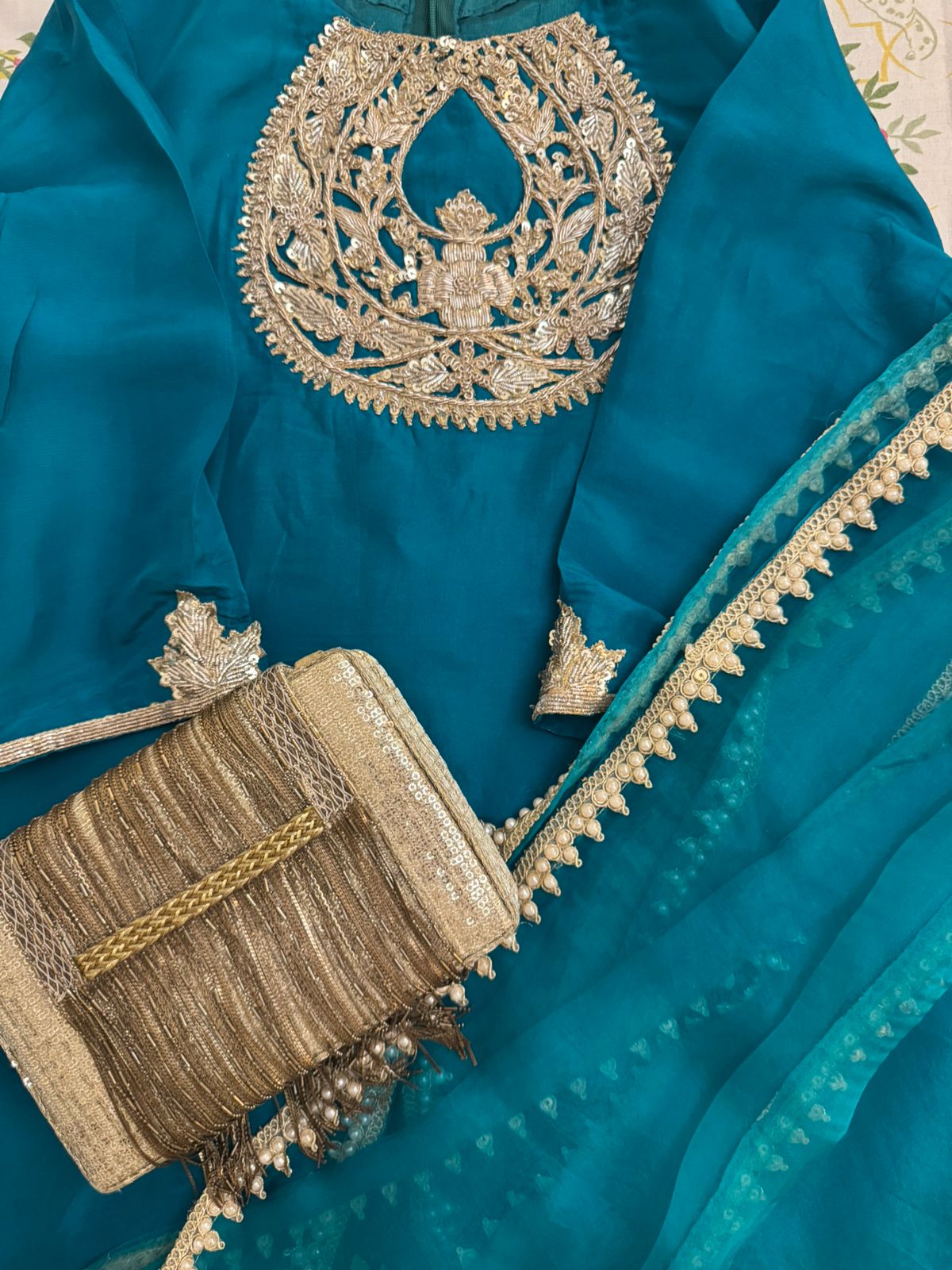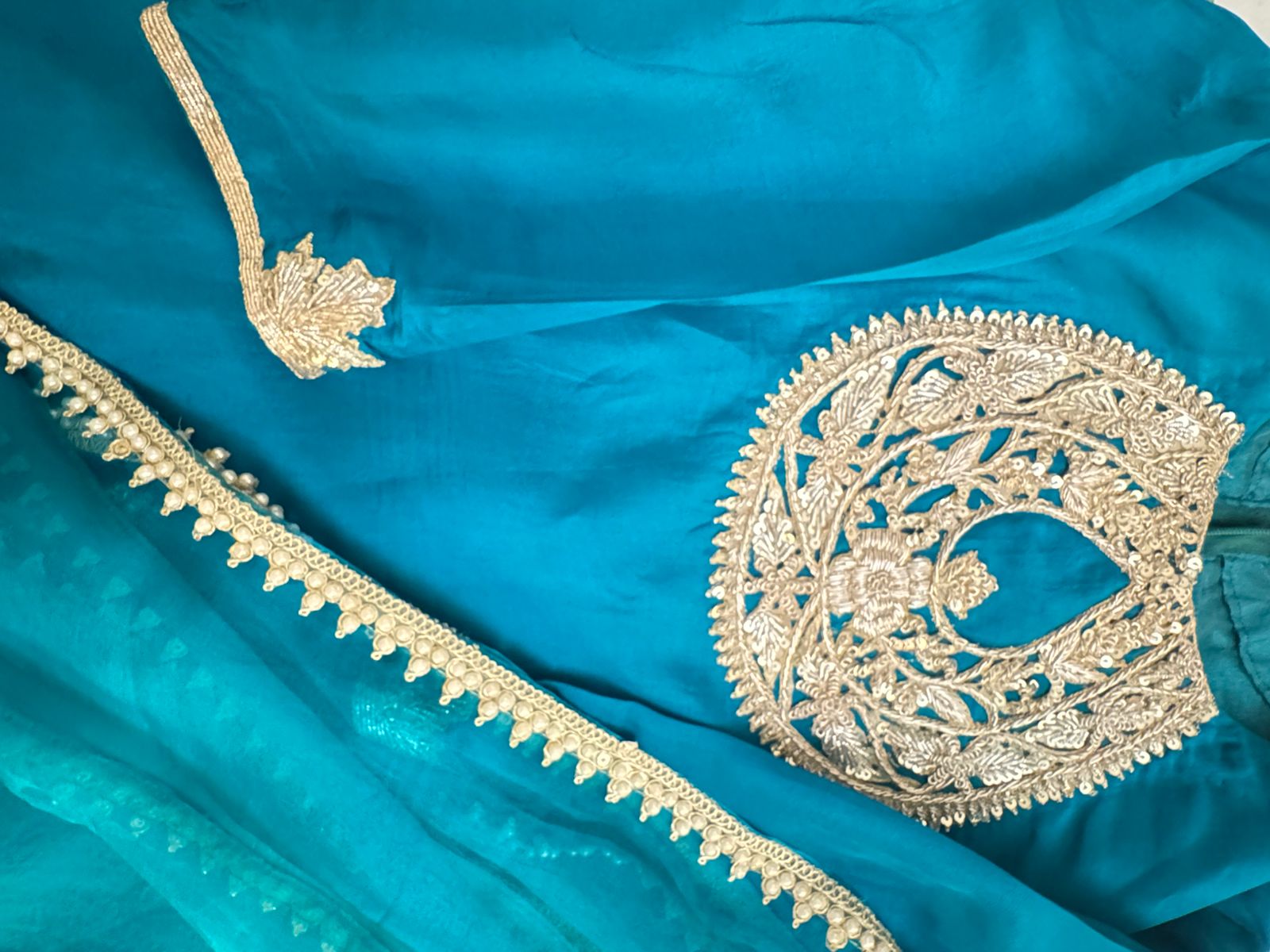 Material: Zari handwork, Organza dupatta, Pure uppada silk